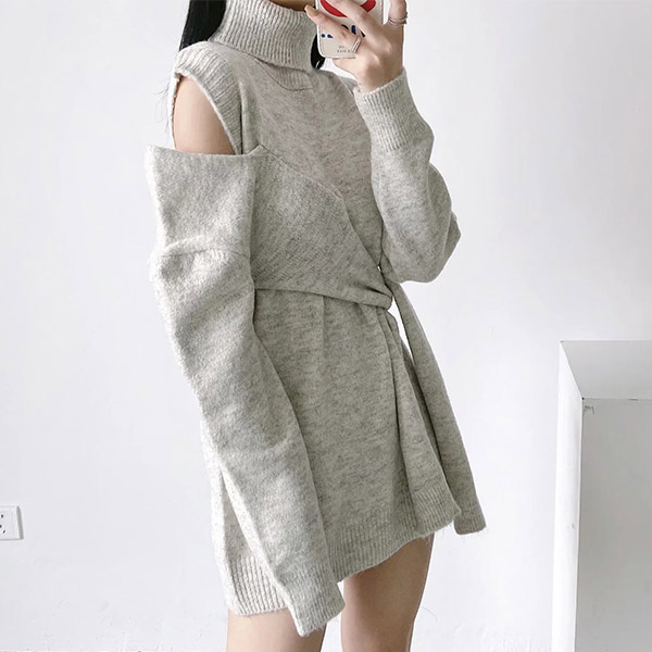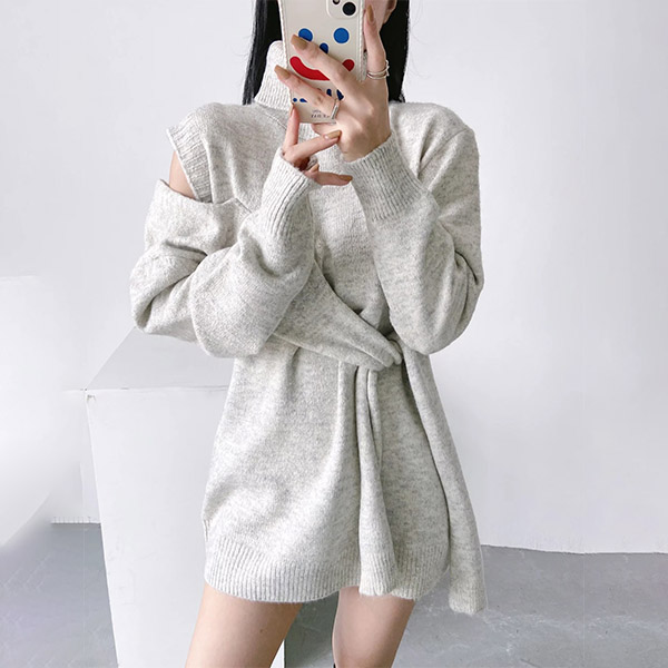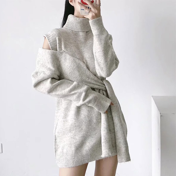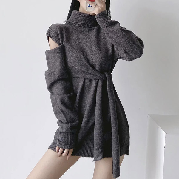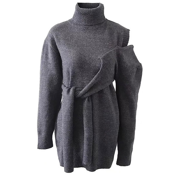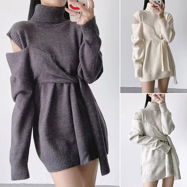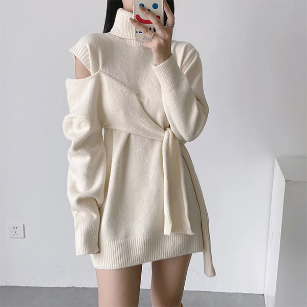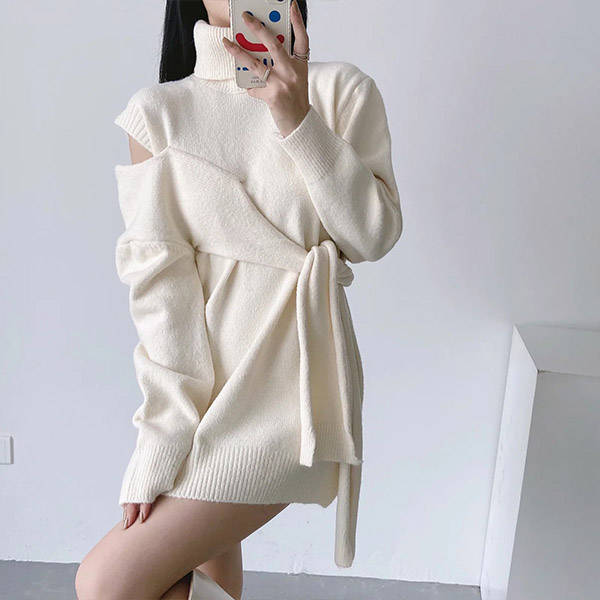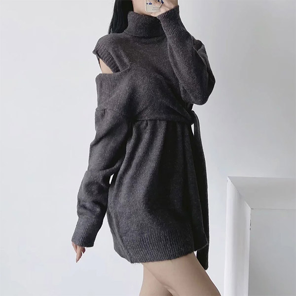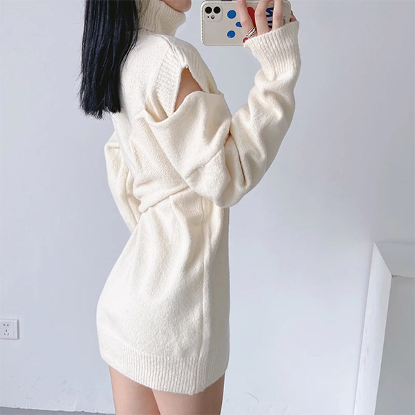 When the days get a little cold,this sweater dress would be your wardrobe staple. Solid color style,the hollow out design at the sleeve part breaks the simple and dull design style,while the lace-up design at the waist part will make this piece look more attractive. You can match it with your over-the-knee boots to achieve for a charming autumn look.