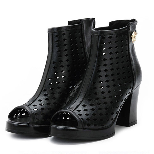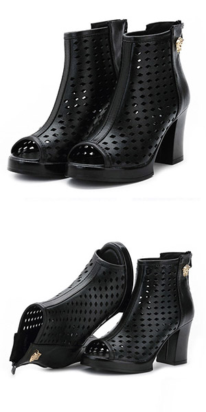This sandals features hollow out style,with peep toe and thick high-heeled design,