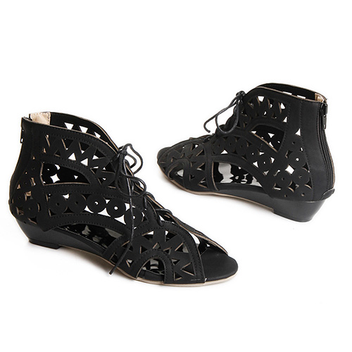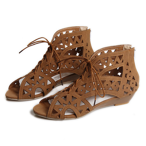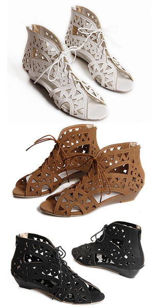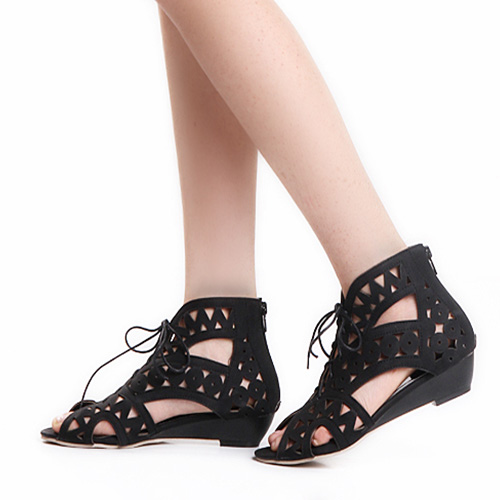 wedge heel and lace-up design,providing a comfortable wearing for you. Backside