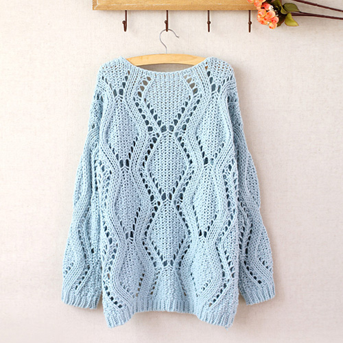 Fashion Hollow Out Quilted High-low Hemline Knitting Sweater