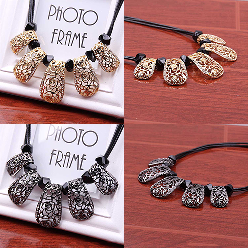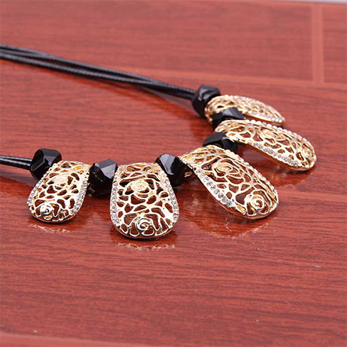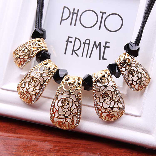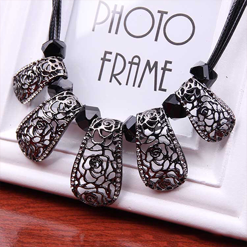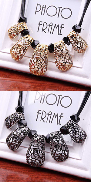 Your flair for fashion will shine through this necklace. Decorated with hollow out roses
