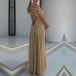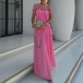 Fashion Hollow Out Round Neck Sleeveless Pleated Maxi Dress