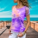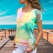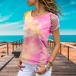 Make your simple and dull wardrobe look more colorful by adding this t-shirt. The tie-dye printed and hollow out details make this piece look so eye-catching and distinctive. So why not slip into this delightful piece to start your wonderful day?