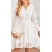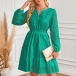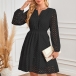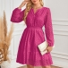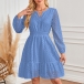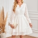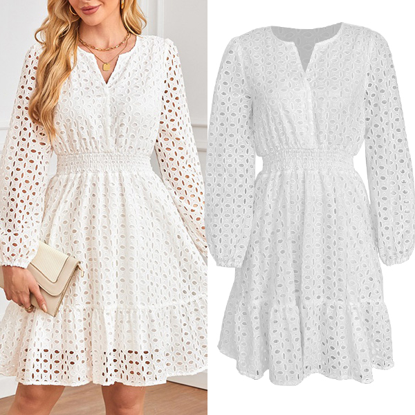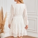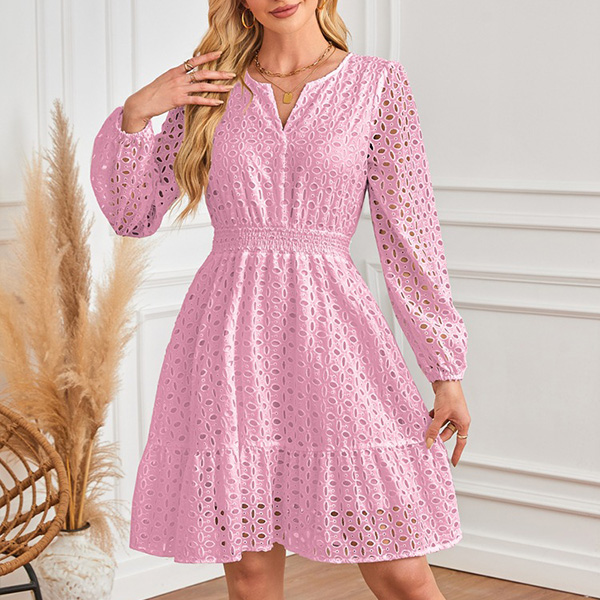 Fashion Hollow Out Solid Color V-neck Long Sleeve High-rise Dress