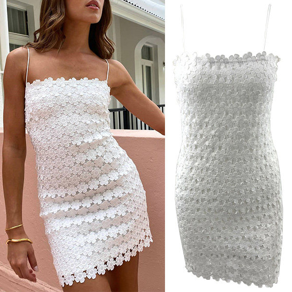 This captivating lace dress exudes a sophisticated and alluring aesthetic, combining a bold square neckline with a figure-hugging bodycon silhouette. The hollow-out detailing adds a daring and eye-catching element, creating a visually striking and modern look. Hope you like it.