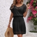 Fashion Hollow Out V-neck Cap Sleeve Beach Cover-up Dress
