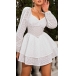 Fashion Hollow Out V-neck Long Sleeve Cinch Waist Tiered Dress