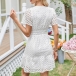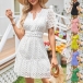 This dress features a trendy hollow-out design, a flattering V-neckline, short sleeves, and a high-rise silhouette, creating a chic and daring ensemble. Perfect for daily wear!