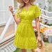Fashion Hollow Out V-neck Short Sleeve High-rise Mini Dress