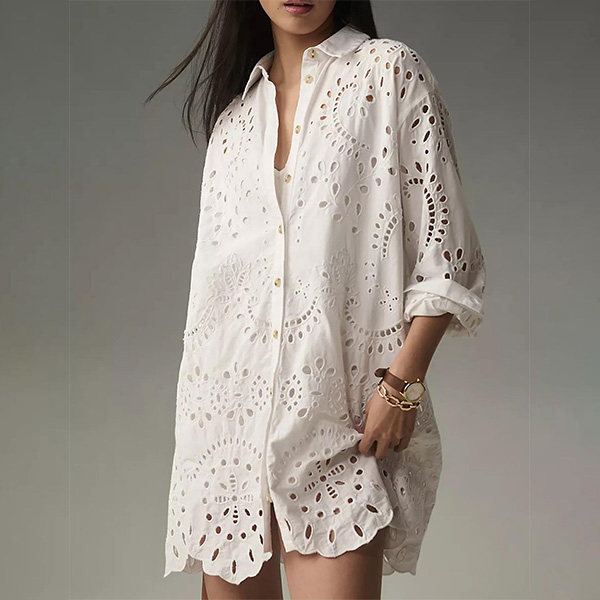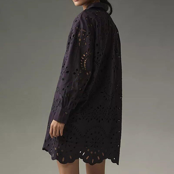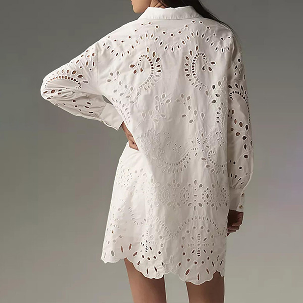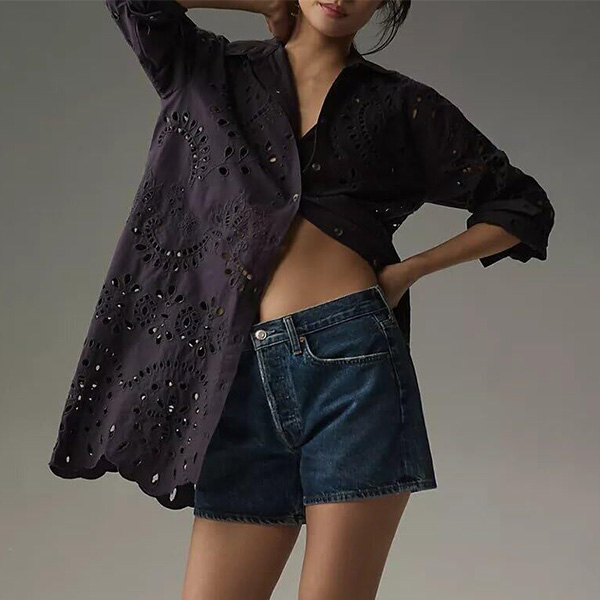 Elevate your wardrobe with this stylish and trendy hollow-out blouse. The stand collar design adds a touch of sophistication and elegance, while the hollow-out detailing creates a chic and modern look. Style it with jeans and sneakers for a more relaxed and casual look.