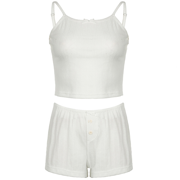 Stay cool and stylish with this fashion two-piece set! This set includes a trendy cami shirt and matching shorts, both featuring unique hollowout details.