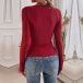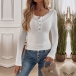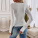 This ribbed shirt features a hollow-out U-neck design, button detailing, and long sleeves, creating a chic and stylish look. Pair it with high-waisted pants or a skirt for a sleek and sophisticated look.