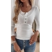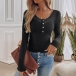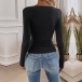 Fashion Hollowout U-neck Button Long Sleeve Ribbed Shirt