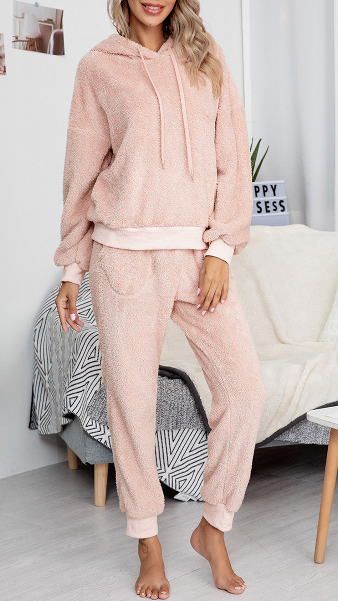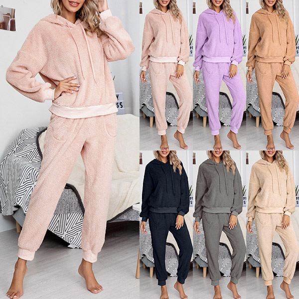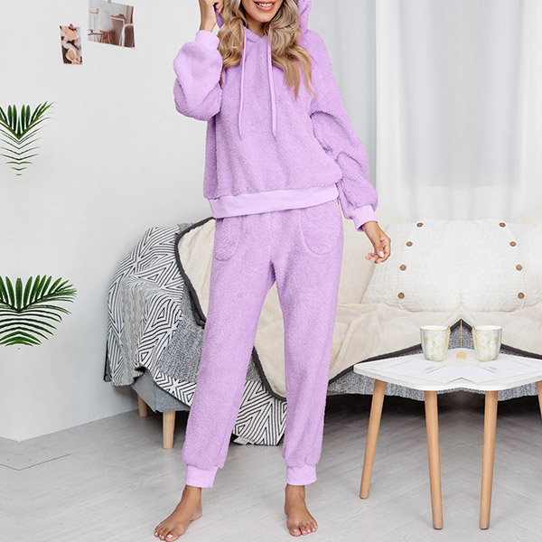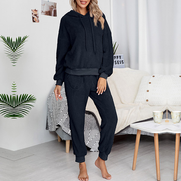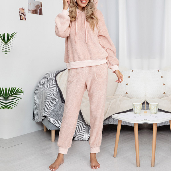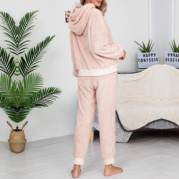 Fashion Hooded Plush Two-piece Loungewear Set