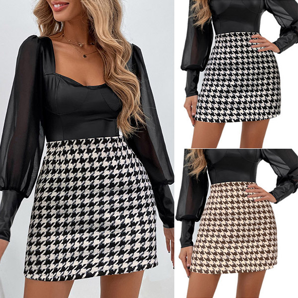 Short, fitted skirt. High waist, overall houdstooth printed pattern. Perfect for your daily wear!