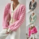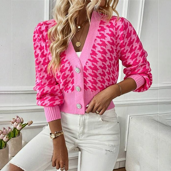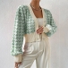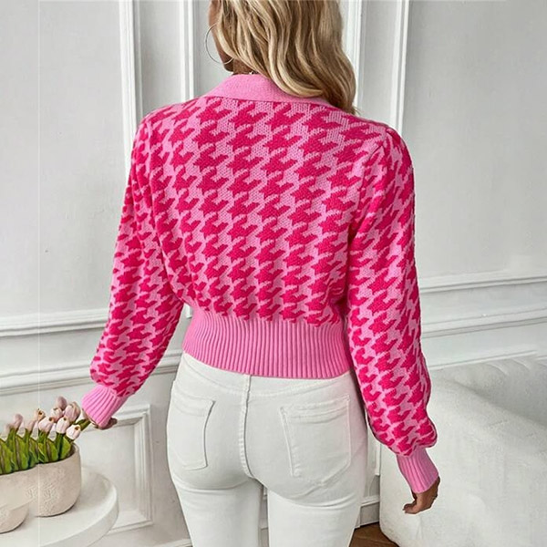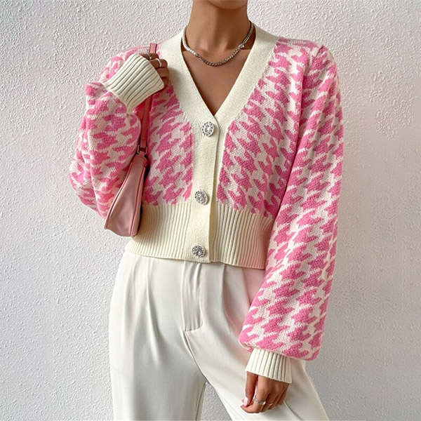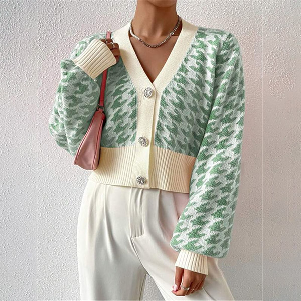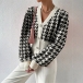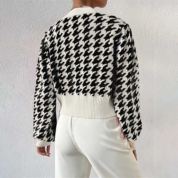 Fashion Houndstooth Pattern Buttoned Long Sleeve Crop Cardigan