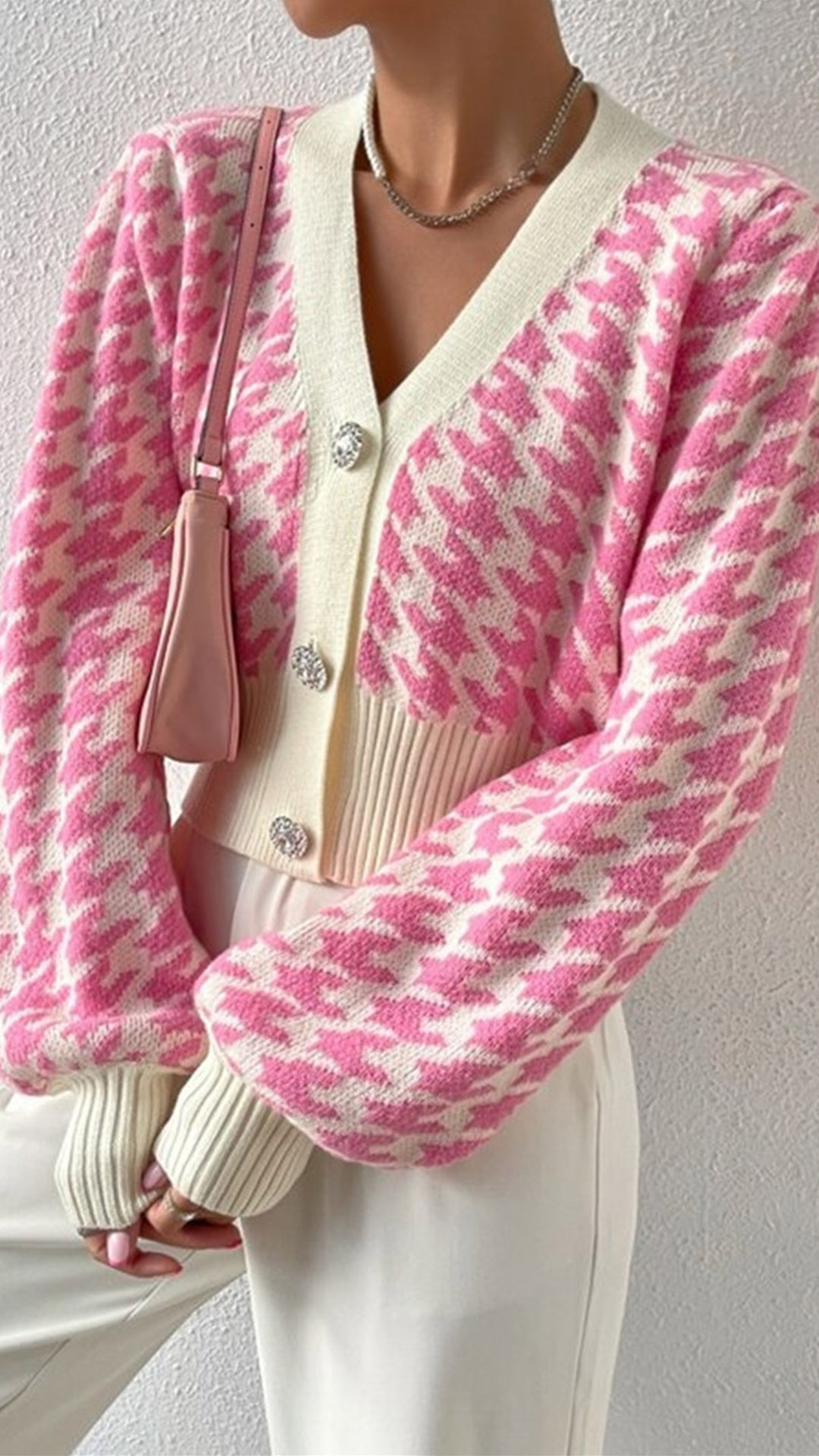 Crafted with high-quality fabric, this cardigan offers a comfortable and flattering fit. The houndstooth pattern adds a classic and timeless element, perfect for adding a touch of sophistication to your outfit.