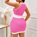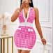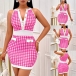 Fashion Houndstooth Printed Button V-neck Sleeveless Bodycon Dress