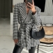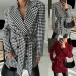 Fashion Houndstooth Printed Notch Lapel Double-breasted Self-tie Blazer