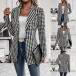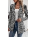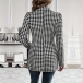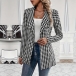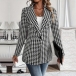 Fashion Houndstooth Printed Notch Lapel Long Sleeve Blazer