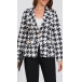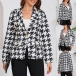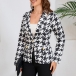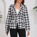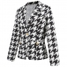 Fashion Houndstooth Printed Notch Lapel Long Sleeve Blazer