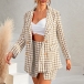 Fashion Houndstooth Printed Suit Set Consist of Long Sleeve Blazer and Button Slit Skirt