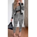 Fashion Houndstooth Printed Three-piece Set Consist of Blazer, Crop Top and Skinny Pants