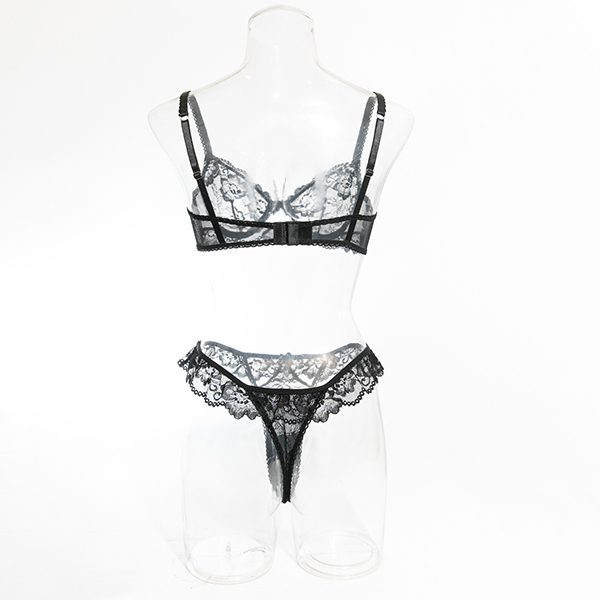Fashion Howllowout Bowknot Ruffle Lace Two-piece Lingerie Set