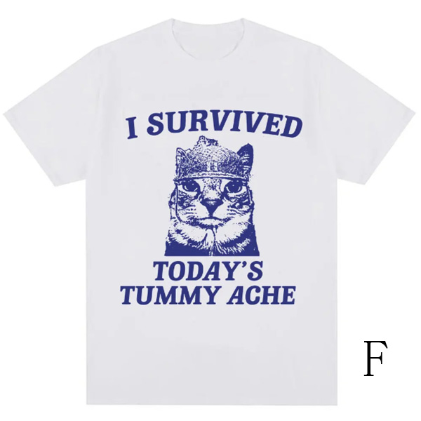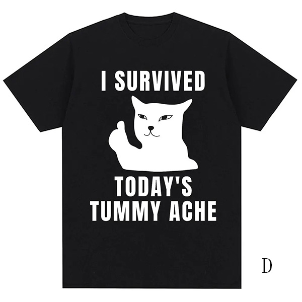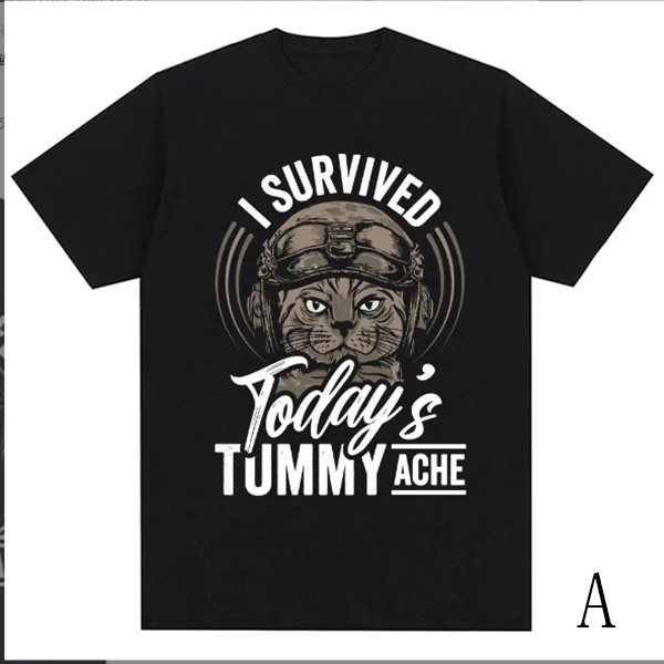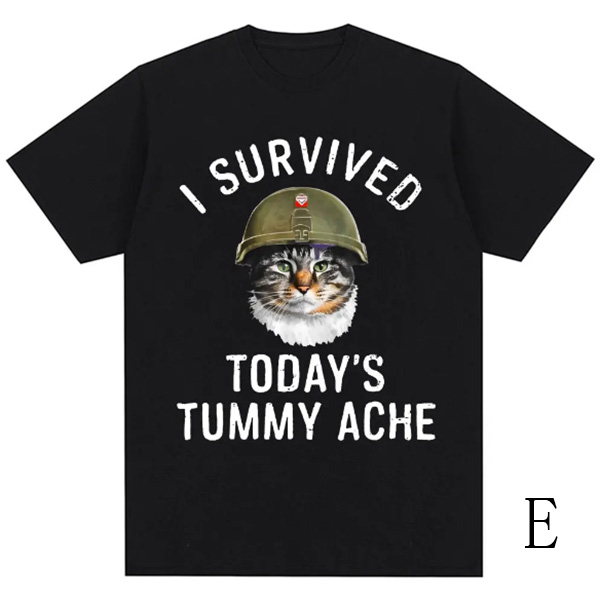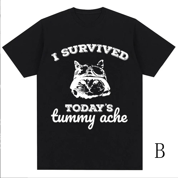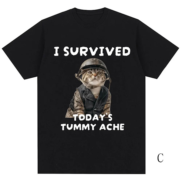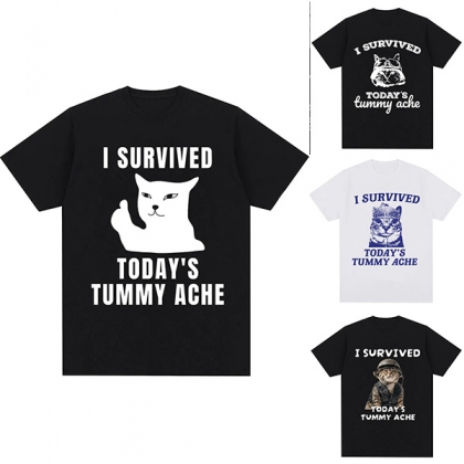 Show off your playful side with this fashion "I Survived" letter and cat printed crew neck shirt! This fun and casual tee features a quirky cat graphic accompanied by the bold text, perfect for cat lovers and anyone with a sense of humor. Wanna have a try?