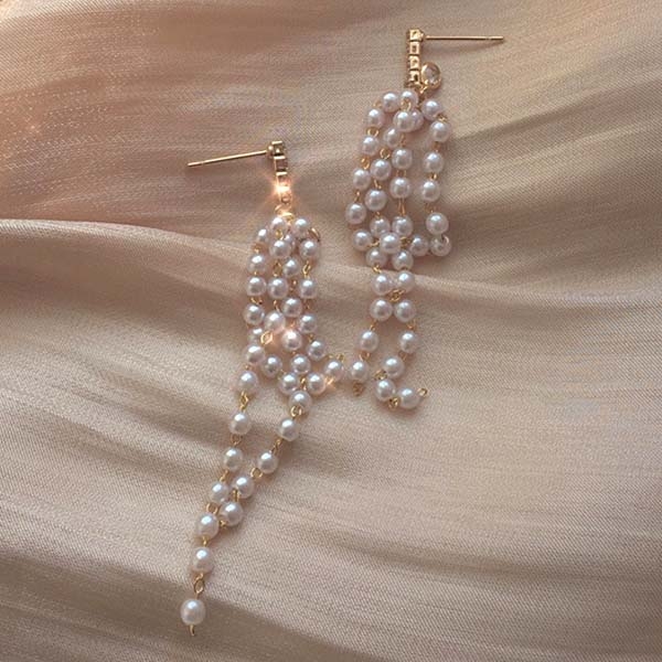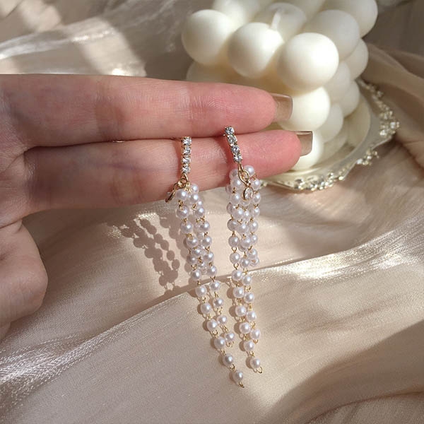 Fashion Imitation Pearl Tassel Pendant Earrings