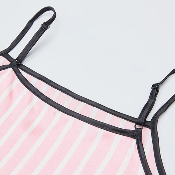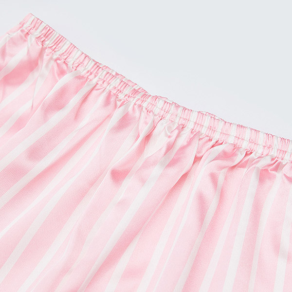 Crafted from super soft,smooth imitation silk fabric,which can offer you an utmost comfort. And the stripe element design makes it look more stylish and attractive. Including a long sleeve top,a pants,a shorts,a sling top,a eye mask,a hair ring and a storage bag,this seven-piece home-wear set is perfect fit for different seasons.