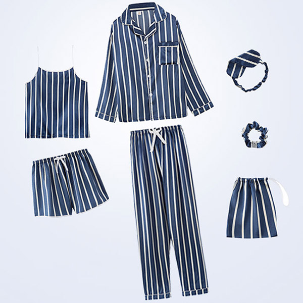 Fashion Imitation Silk Stripe Nightwear Home-wear Set Seven-piece Set