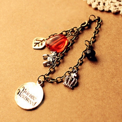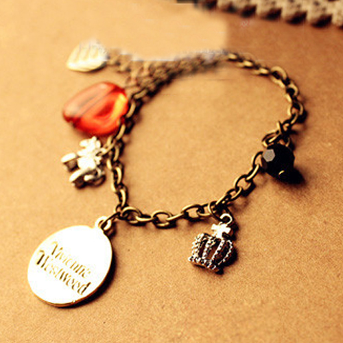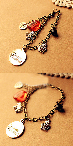 Fashion Imperial Crown Colored Stone Pendant Bracelet