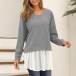 Fashion Irregular Hem Spliced Long Sleeve V-neck Knit Top