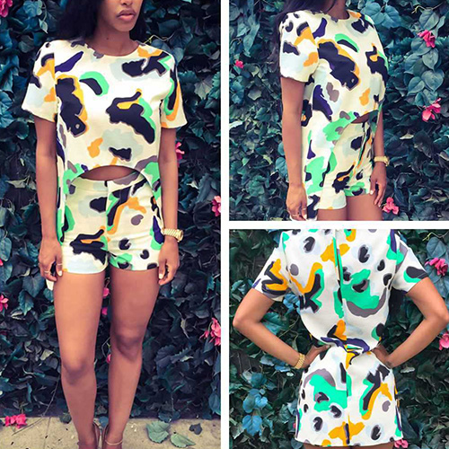 Show off your stylish and chic style by the way of this printed two-piece set! Including a short sleeve