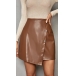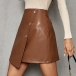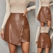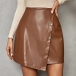 Fashion Irregular Hemline Buttoned Artificial Leather PU Skirt