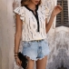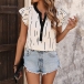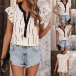 Fashion Irregular Stripe Printed V-neck Ruffled Sleeve Shirt