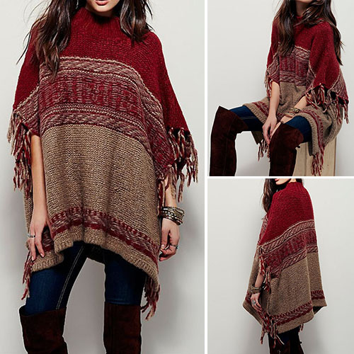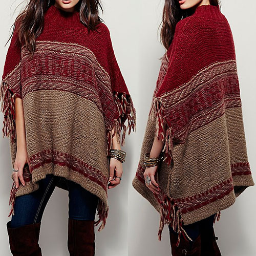 Absolutely this chic cape-style sweater can draw your attention. It's tassel and