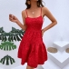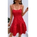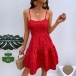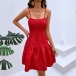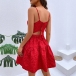 How about this red dress? The jacquard fabric adds a touch of luxury and texture to the dress, elevating its overall design. The backless design with self-tie design add some chic element to this dress! Hope you like it.