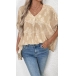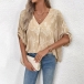 Fashion Jacquard Batwing Sleeve V-neck Loose Shirt