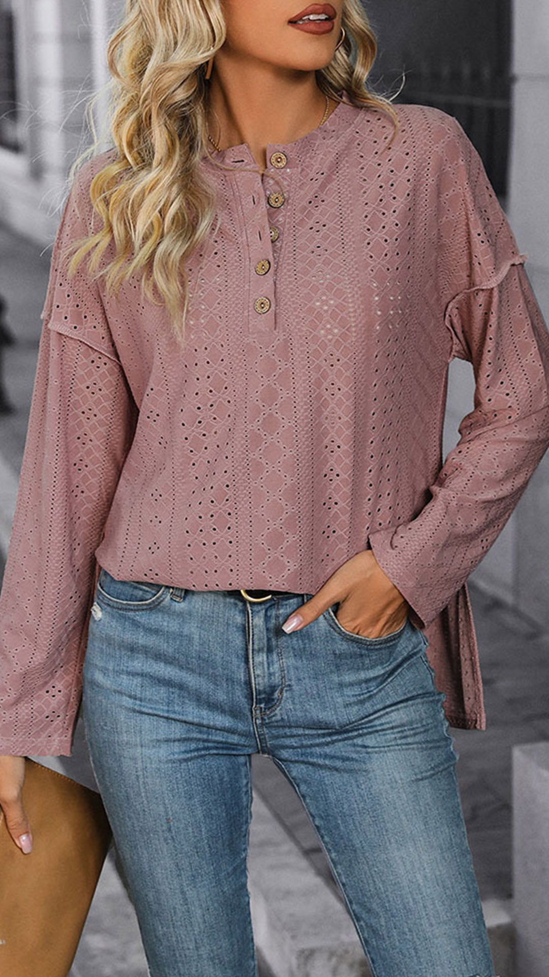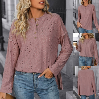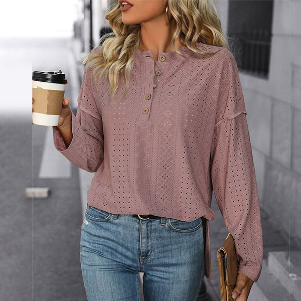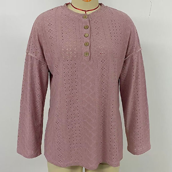 Fashion Jacquard Button Crew Neck Long Sleeve Shirt