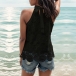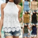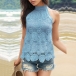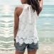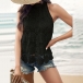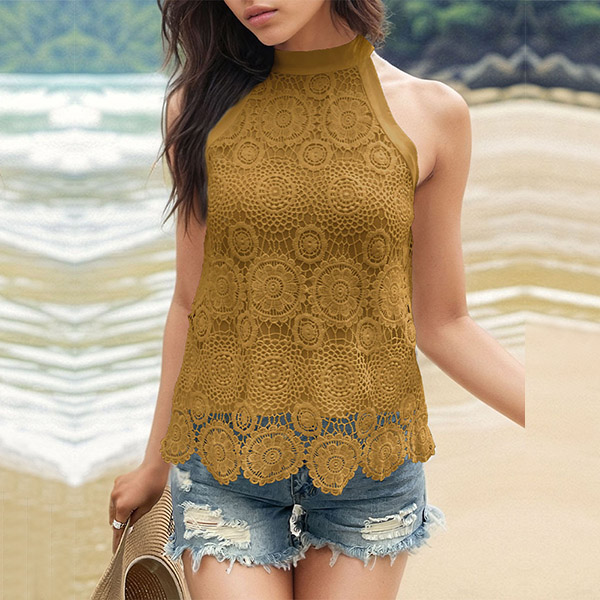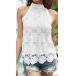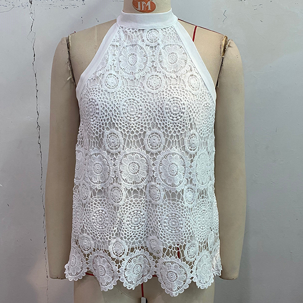 Fashion Jacquard Halterneck Sleeveless Lace Shirt