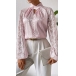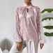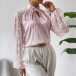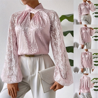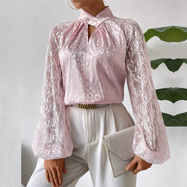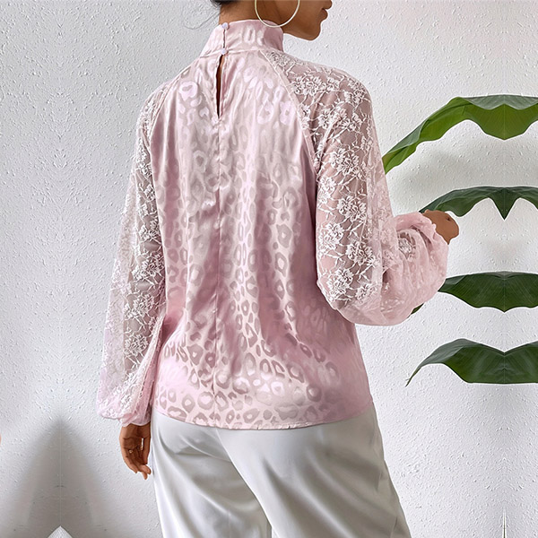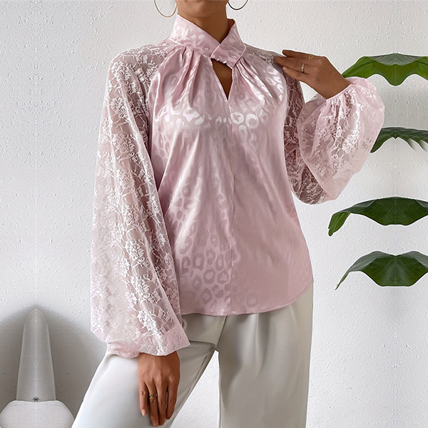 Fashion Jacquard Lace Spliced Long Sleeve Front Cut Out Leopard Printed Shirt