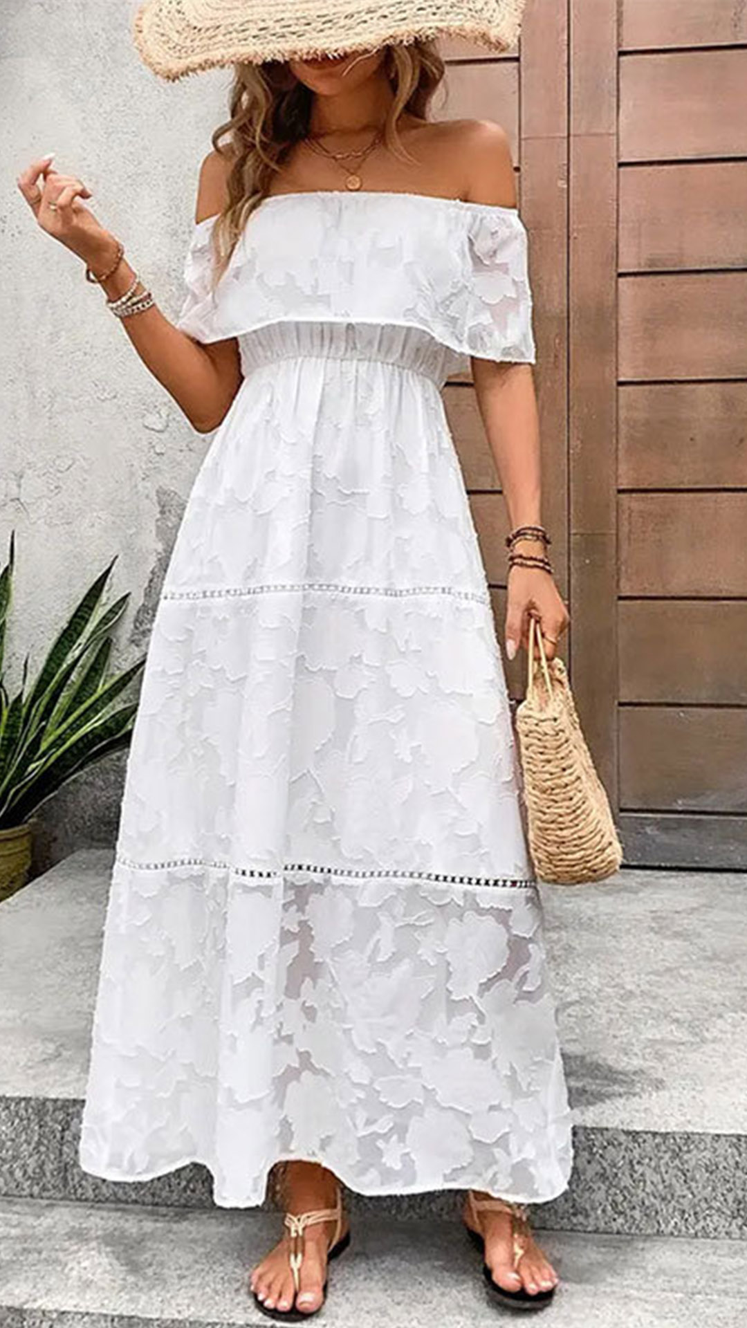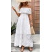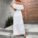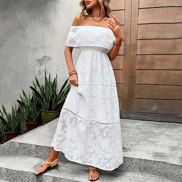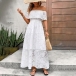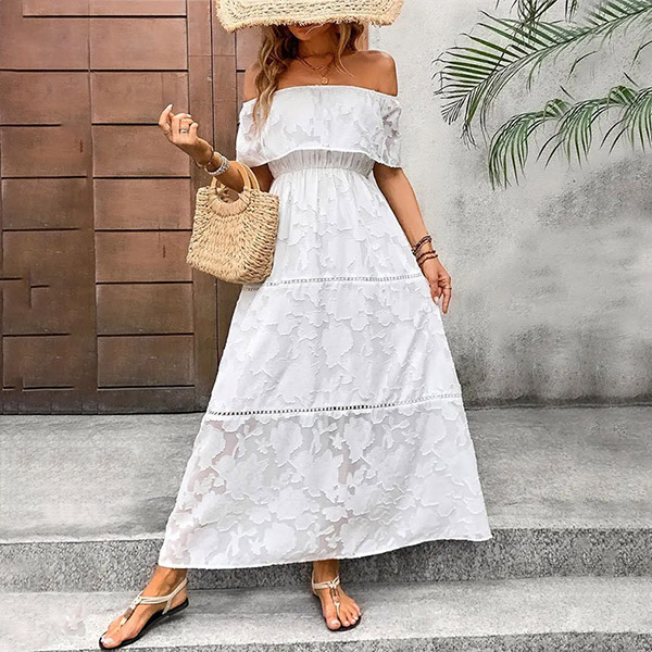 Fashion Jacquard Ruffle Off-the-shoulder Tiered White Midi Dress