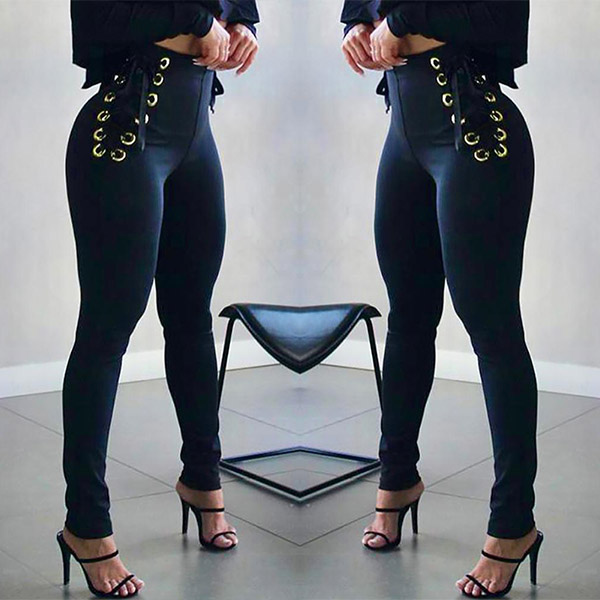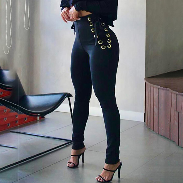It is a good way to portray your charming and slender legs with a tight pants such as this creation. Its soft,breathable fabric can ensure an all-day comfort,while the keyhole lace-up details on both waist sides will make this piece look more attractive. Perfect fit for matching with different style tops.