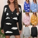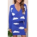 Fashion Knitted Cloud Pattern Two-piece Set Consist of Cardigan and Skirt