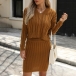 This fashion knitted two-piece set consists of a hooded sweater and skirt, offering a cozy and stylish ensemble that is perfect for a casual day out or lounging at home. The knitted fabric provides a soft and cozy feel, perfect for cooler weather. Wanna have a try?