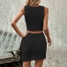 Fashion Knitted Two-piece Set Consist of Sleeveless Vest and Skirts