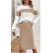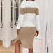 Stay stylish and cozy with this fashionable knitted two-piece set. It consists of a sweater and side slit skirt. The sweater features a classic knit design and contrast color stripe that is both comfortable and chic, perfect for keeping you warm in style. The side slit skirt adds a touch of flair and sophistication, creating a trendy and modern look. Pair this set with boots for a stylish look~