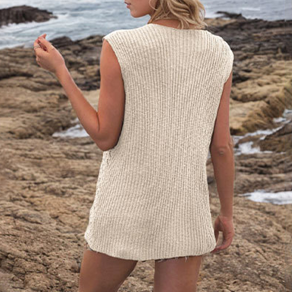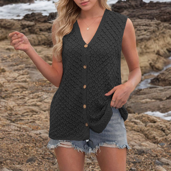 Fashion Knitted V-neck Sleeveless Front Button Vest